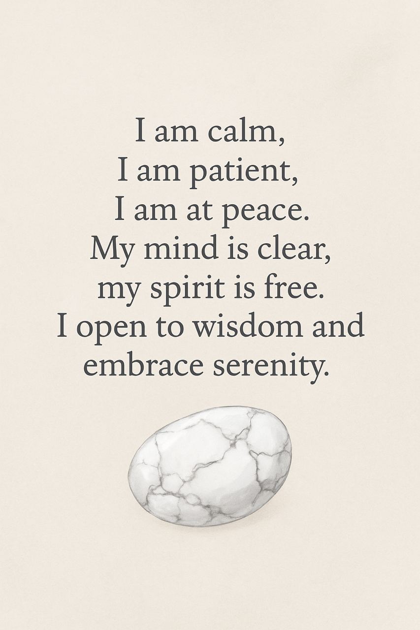 White Howlite is known as a stone of calm and peace. It helps reduce stress, anger, and tension. The stone encourages patience and emotional balance and it supports deep meditation and spiritual connection.