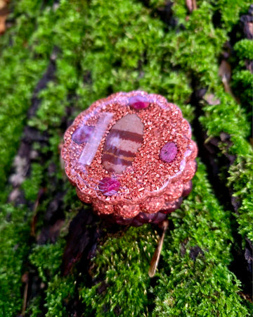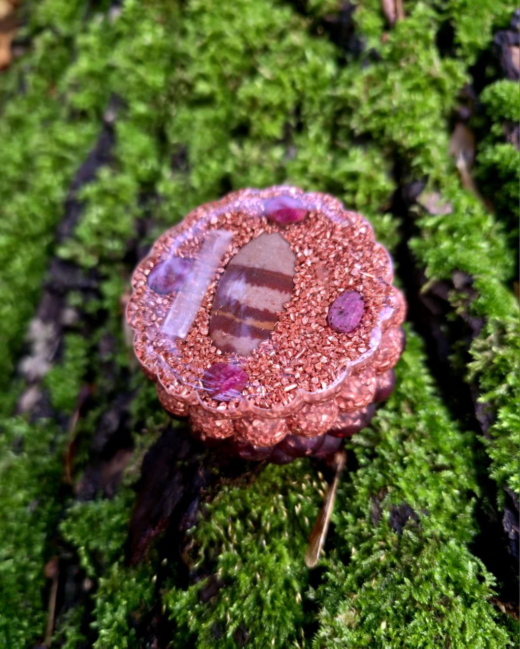 A lucid-dreaming orgonite created with ruby and red garnet radiates a powerful, warm energy that gently opens the heart. Ruby inspires love, passion, and emotional courage, helping you connect more deeply. Red garnet grounds these feelings with steady strength, nurturing stability and devotion. Together, they encourage heartfelt expression and a renewed sense of inner warmth. Their combined vibration supports emotional healing and authentic connection. A radiant companion for embracing love, openness, and soulful alignment.
