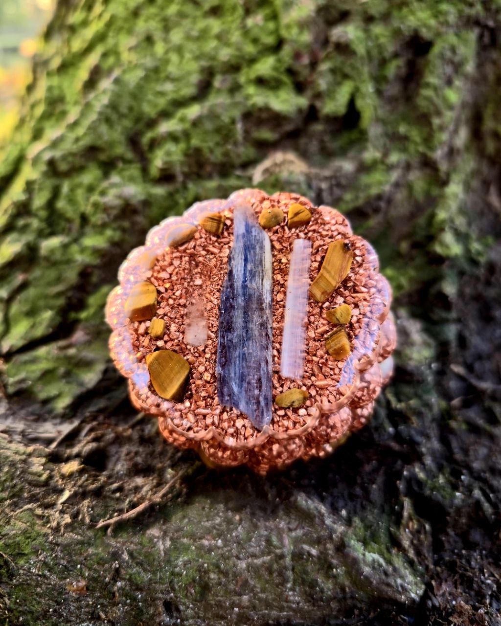A lucid-dreaming orgonite crafted with Tiger’s Eye and Blue Kyanite creates a steady bridge between grounded awareness and the dream world. Tiger’s Eye anchors your energy, offering protection and stability as you explore. Blue Kyanite opens intuitive pathways, sharpening clarity within dreams and visions. Together, they harmonize the mind, easing you into deeper states of conscious dreaming. Their combined energy forms a protective field that keeps the journey calm and centered. A supportive companion for safe, grounded, and insightful dream exploration.