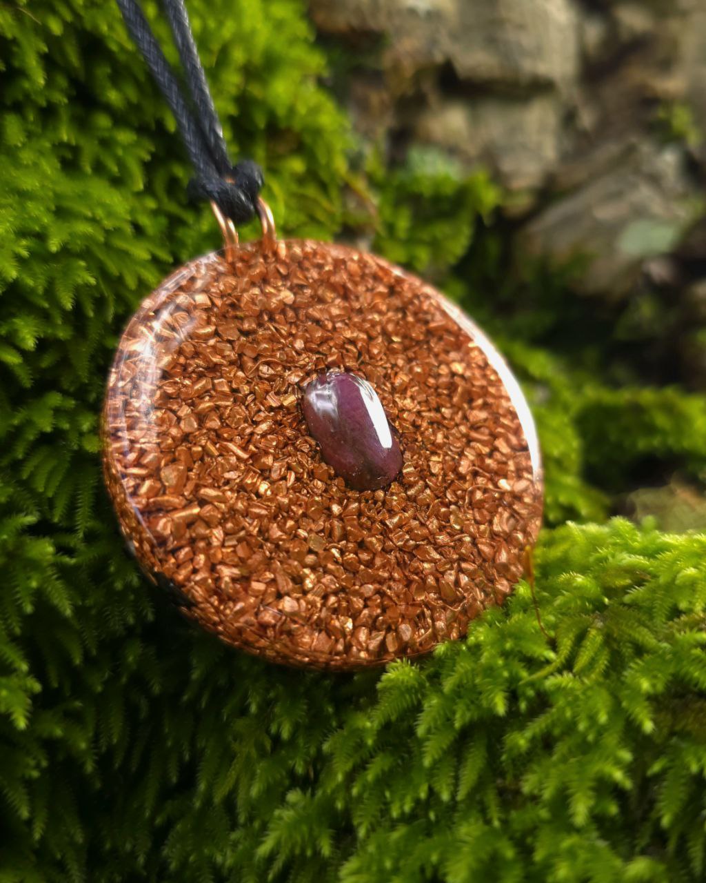 Amazing orgonite pendant crafted with emerald, ruby, Lemurian quartz, clear quartz, selenite, hematite, rose quartz, rutile quartz, copper, and a vortex disc radiates a balanced heart-opening energy that feels both soothing and empowering. Emerald nurtures emotional harmony, inviting love, compassion, and renewal. The vibrations of Ruby resonate with ultimate life force and emanate the highest vibrations of pure red light. Ruby is a powerful grounding stone that greatly increases the chi in one’s body, flourishing all bodily systems and organs for the utmost performance. Lemurian quartz transmits a message of oneness and activates the light codes within you DNA and helps to clear old energetic imprints, Clear quartz amplifies intention, enhancing the pendant’s uplifting and healing vibration. Rosequartz is the stone of unconditional love and selflove and we noticed that this frequency is very needed and wanted these days. Rutile quartz has golden rays which helps to bring these rays of light in and around your system. Selenite keeps the energy clean, pure and flowing, creating a soft, luminous field around you and hematite helps to ground your energy to be in the here and now. Enhanced by copper and the vortex disc, this pendant becomes a powerful guide for openness, heart centered living, emf protection and heartfelt connection. While having them close to your head when you sleep, you can notice that the dreams go more realistic and vivid. I advice to increase the time of wearing step by step as internal movements and shifts can happen instantaneously,